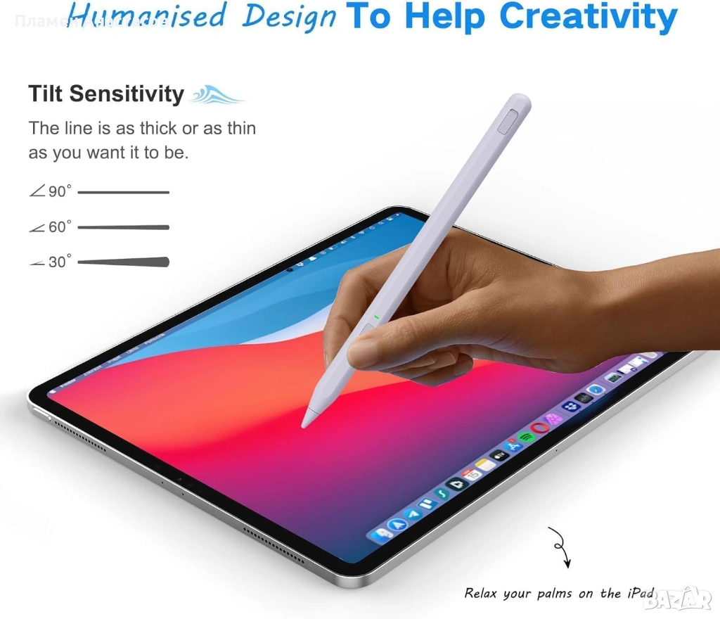 Milikilo AX10S-US Stylus Pen за iPad – светлолилав активен стилус с Palm Rejection е универсален дигитален молив, създаден за писане, рисуване и прецизна работа върху широк набор от iPad модели. Осигурява плавно и точно писане без забавяне, а технологията Palm Rejection позволява удобно поставяне на ръката върху екрана без нежелани докосвания. Нежният светлолилав цвят придава модерен и стилен вид, подходящ както за ученици и студенти, така и за ежедневна употреба.