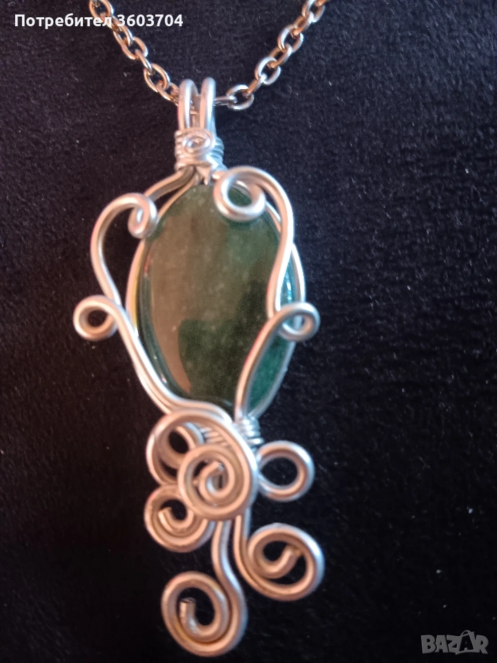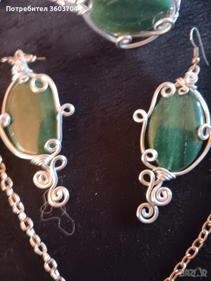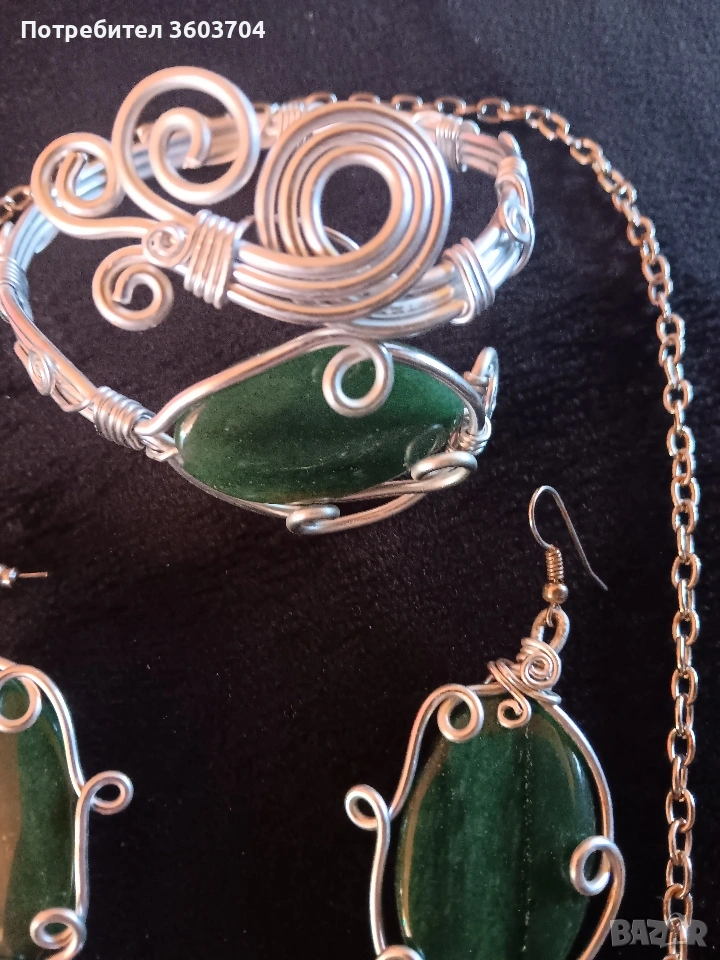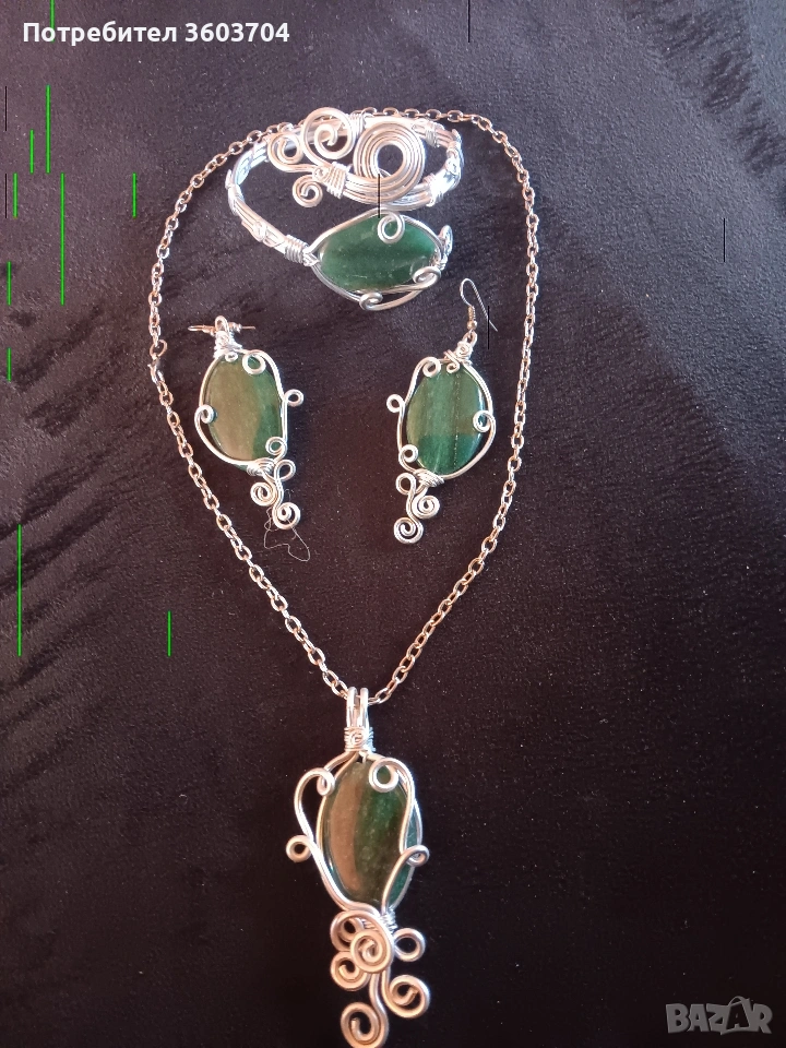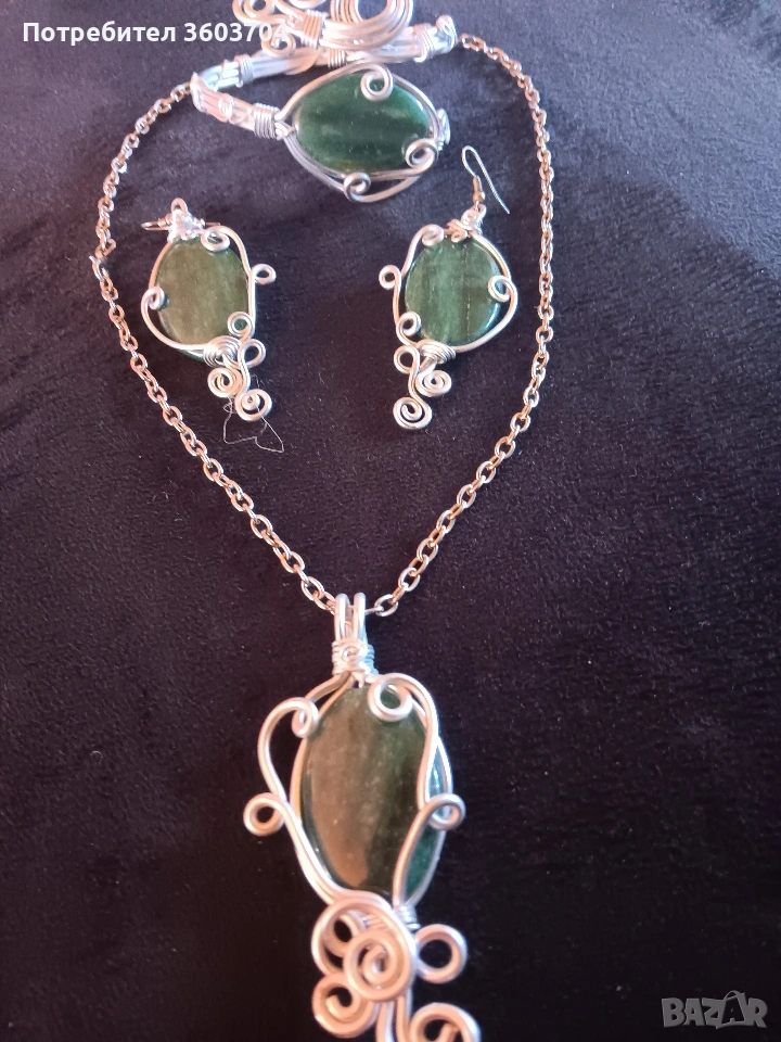 дамски комплект ръчна изработка медальон синджир обеци и гривна с естествени камъни нефрит един уникален комплект за изискани дами към тяхното облекло Това е единичен модел и няма друг такъв Благодаря ви за вниманието Разгледайте и моите други обяви може нещо друго да харесате