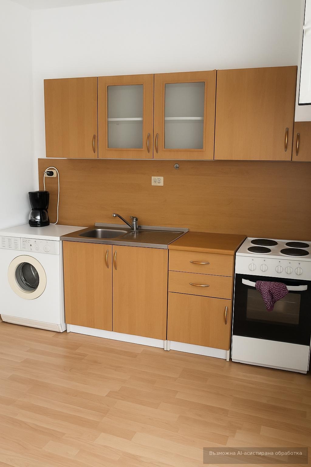 Жилището се предлага напълно обзаведено и оборудвано с всичко необходимо за едно домакинство.