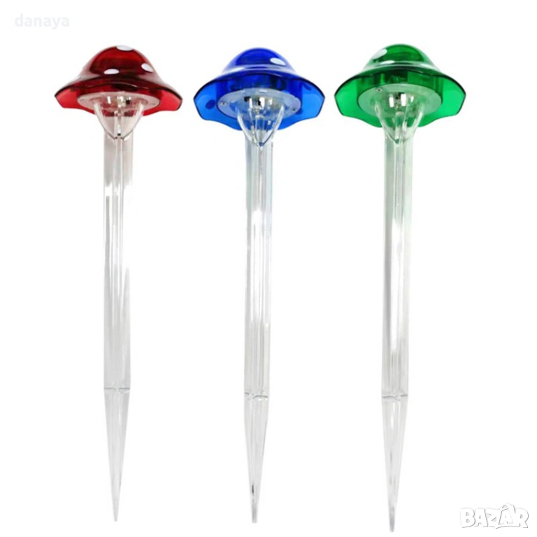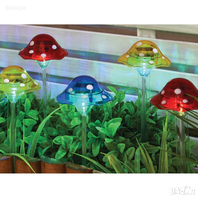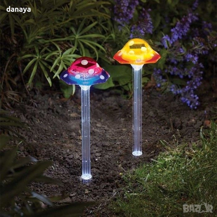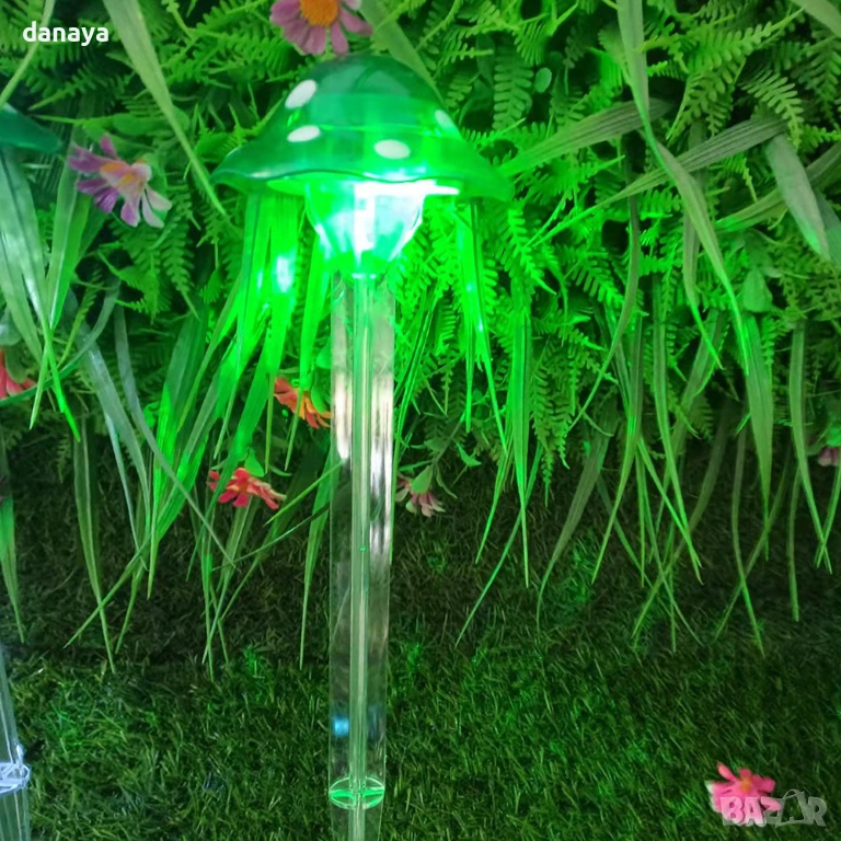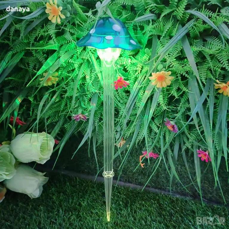 Градинска соларна лампа гъбка е идеална за тревни площи, саксии, алеи и декоративни зони. Цветната LED светлина придава приказно излъчване на градината и превръща външното пространство в приятно място за отдих след залез. Монтажът е бърз и лесен – лампата се забива директно в земята, без инструменти.