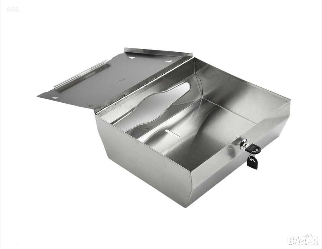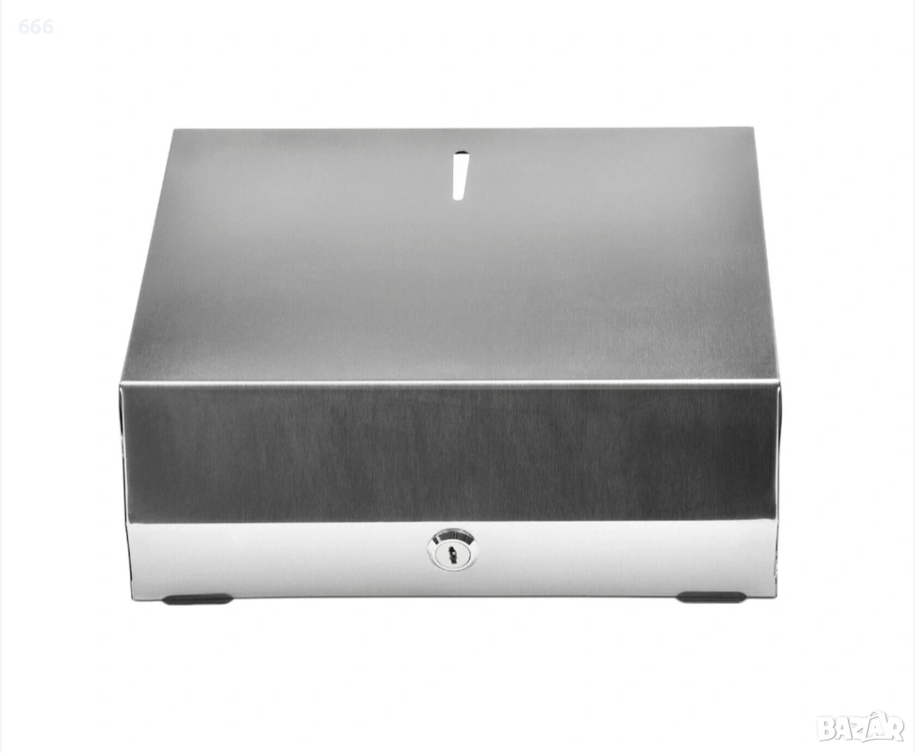 Диспенсър за хартиени кърпи от неръждаема стомана, капацитет 250-400 кърпи, размери 280x100x260mm, водоустойчив дизайн.
