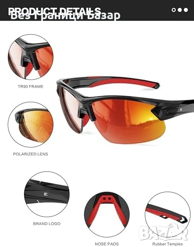 Нови мъжки Поляризирани спортни очила TR90 UV400 за колоездене и бягане