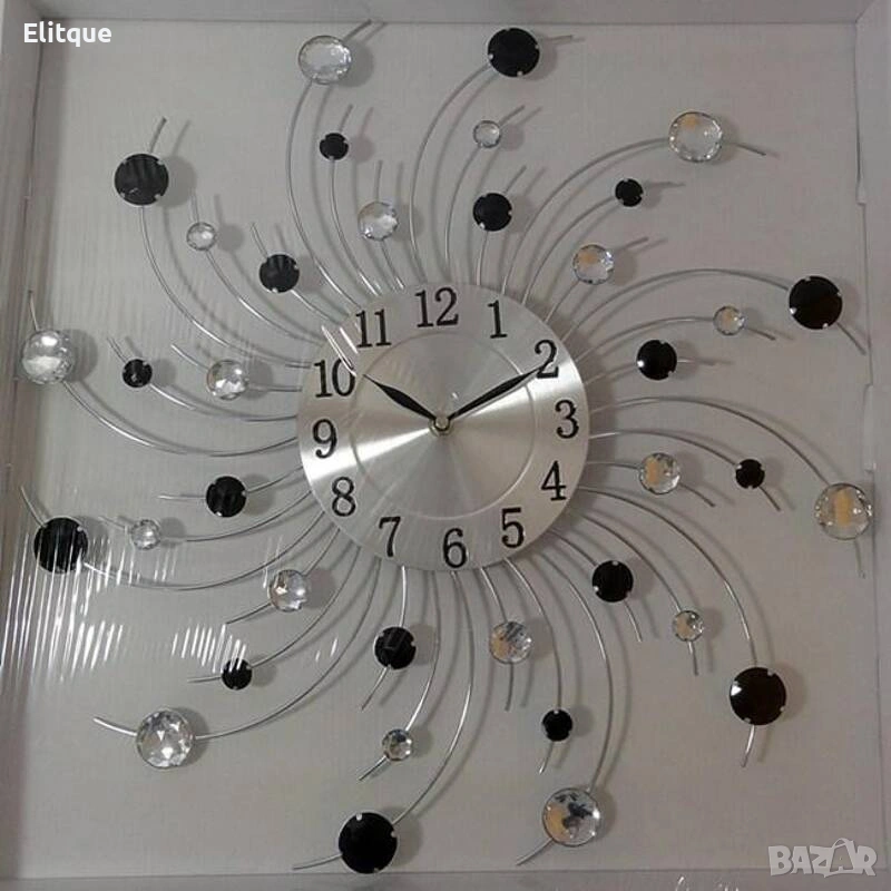Модерен декоративен стенен часовник с кристали – 50 см