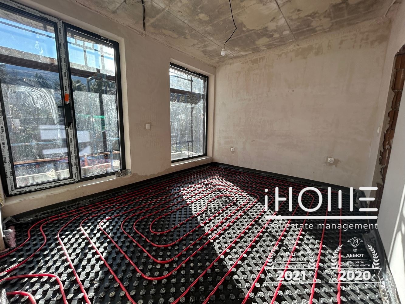 Имотът е разположен на етаж 4 в четириетажна бутикова сграда с общо 3 апартамента. Етап на строителство акт 15. Висококачествено строителство, съчетаващо модерна визия и комфорт. Сградата разполага с двор, отопляем басейн, джакузи, фитнес, подземен паркинг и гледка, както към върховете на Витоша, така и към цяла София и Стара планина.