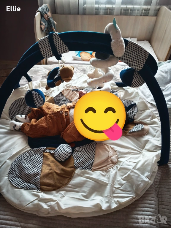 Активна гимнастика, ползвана е точно 4 пъти. Плюшена тъмно синя с щампа на мече, подходяща е за момченце. Лесно преносима и не заема място. Цената не се коментира