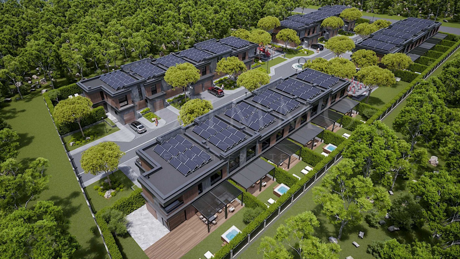 Проектът залага на съвременни енергийно ефективни технологии. На покривите на сградите ще бъдат инсталирани соларни панели, а всяка къща ще разполага със собствена батерия за съхранение на енергия, която позволява използване на произведеното електричество през нощта. Системата покрива до 75% от разходите за електроенергия, като произведената енергия се използва изцяло от домакинството.
