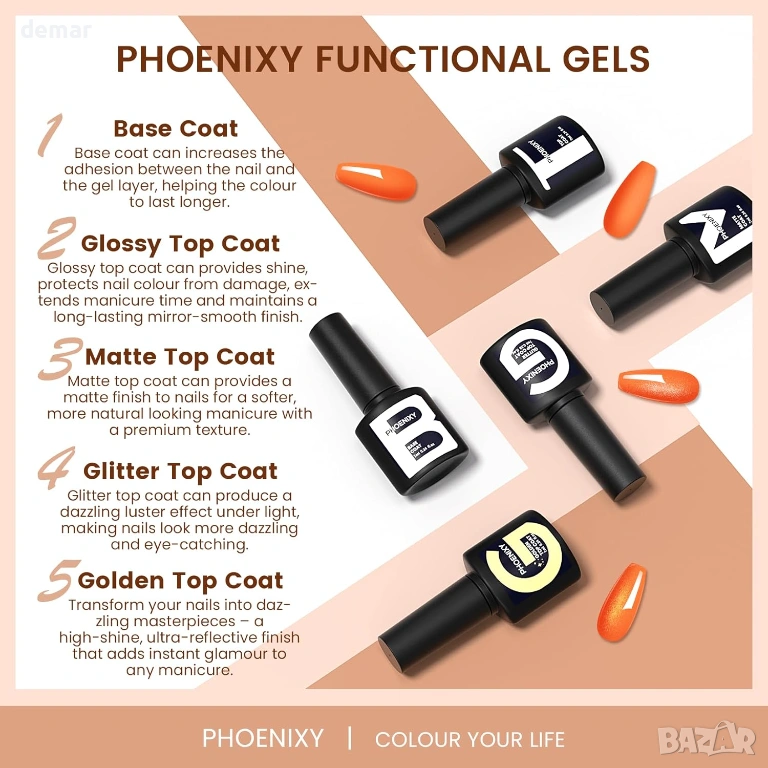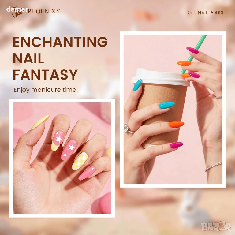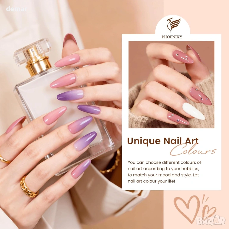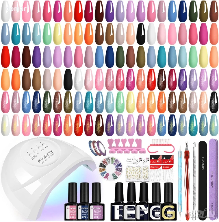 Комплект гел лакове за нокти PHOENIXY, 48W UV лампа, 35 цвята + 5 покрития, подарък за жени