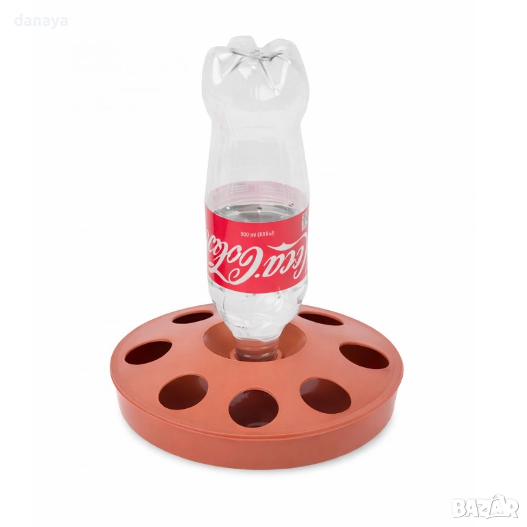 Поилката за пилета е с подходящи размери на отворите, които позволяват на пиленцата да пият вода без да се намокрят или да попаднат в нея. Пластмасовата поилка за пилета не се предлага с включена бутилка.
