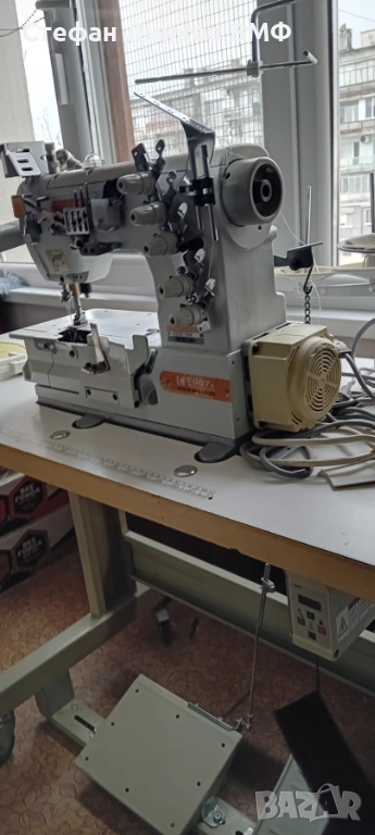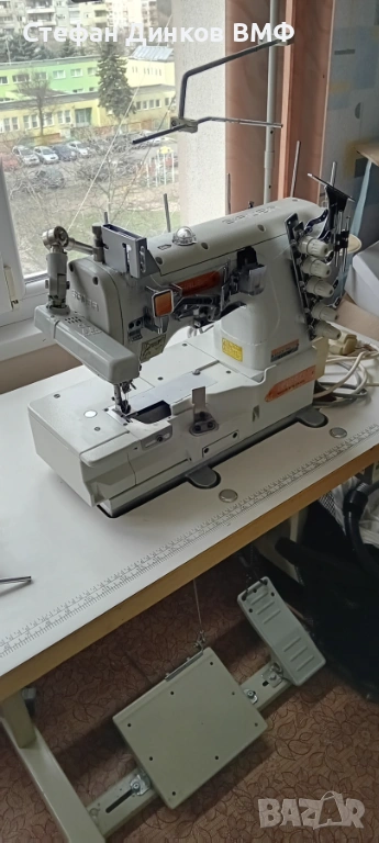 Машината е индустриална покривна с многонишкова система, стабилен и равномерен шев, подходяща за продължителна работа. Монтирана е на оригинална маса с работещ мотор. Машината може да се тества на място.