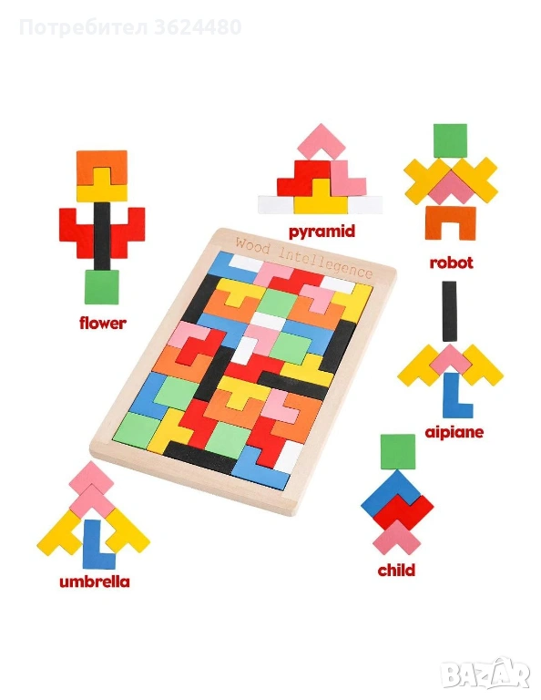 Тетрис ( Дървен пъзел „Wood Intellegence“ )е дървен пъзел състоящ се от 40 елемента с различни геометрични форми и цветове. Това е най-добрияпъзел създаден в днешни времена. Предлага отлична образователна стойност и може да ангажира вниманието ви и ще ви забавлява с часове.