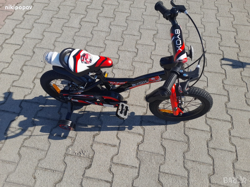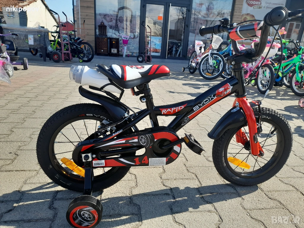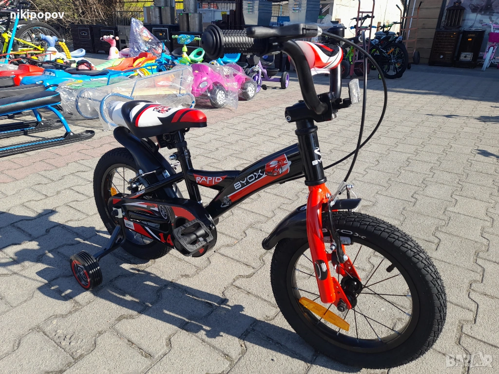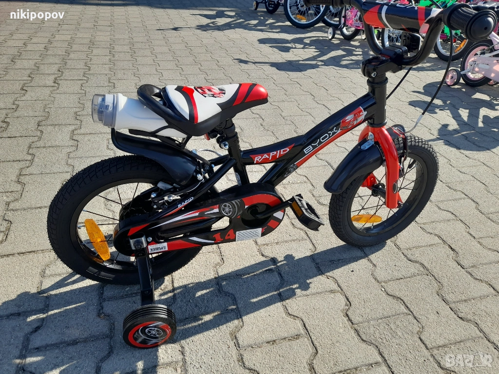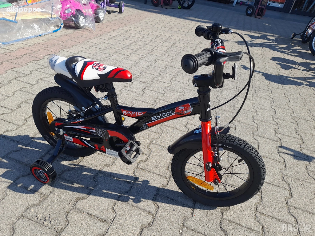 - Детският велосипед с марка Byox модел 14" Rapid е е един прекрасен избор за децата между 3 и 5-годишна възраст и височина от 90 до 110см. Със своята здрава конструкция, регулируеми функции и страхотен дизайн, детският велосипед Rapid предлага перфектната комбинация от безопасност, комфорт и забавление, като го прави идеален избор за млади велосипедисти.