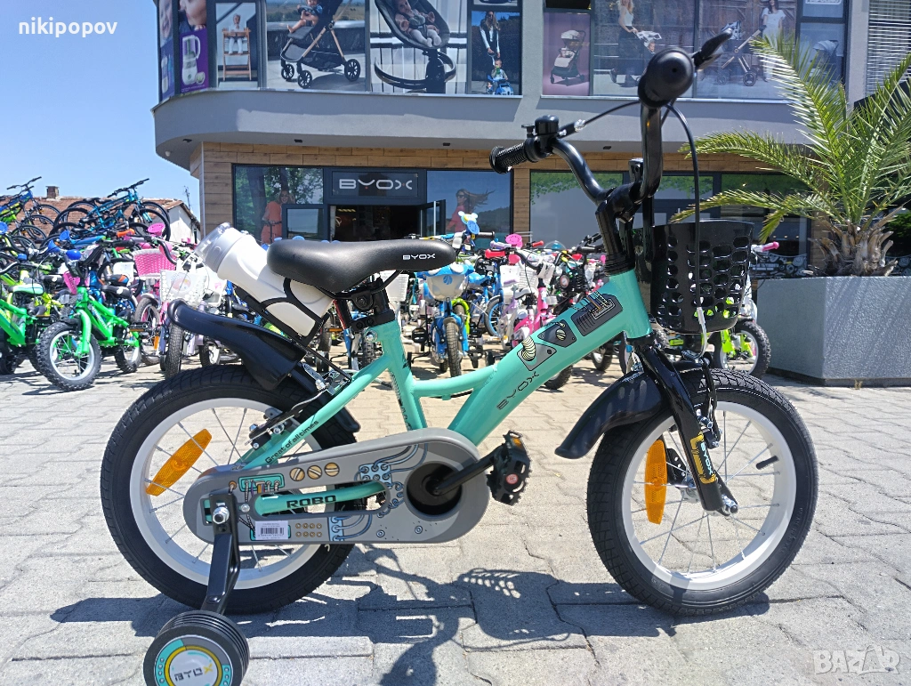 - Детският велосипед с марка Byox модел 14" Robo е е един прекрасен избор за децата между 3 и 5-годишна възраст и височина от 90 до 110см. Със своята здрава конструкция, регулируеми функции и страхотен дизайн, детският велосипед Robo предлага перфектната комбинация от безопасност, комфорт и забавление, като го прави идеален избор за млади велосипедисти.