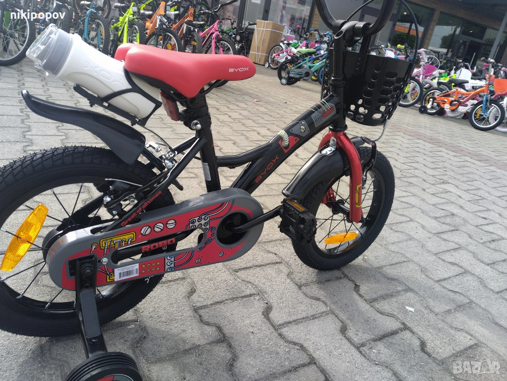 - Детският велосипед с марка Byox модел 14" Robo е е един прекрасен избор за децата между 3 и 5-годишна възраст и височина от 90 до 110см. Със своята здрава конструкция, регулируеми функции и страхотен дизайн, детският велосипед Robo предлага перфектната комбинация от безопасност, комфорт и забавление, като го прави идеален избор за млади велосипедисти.