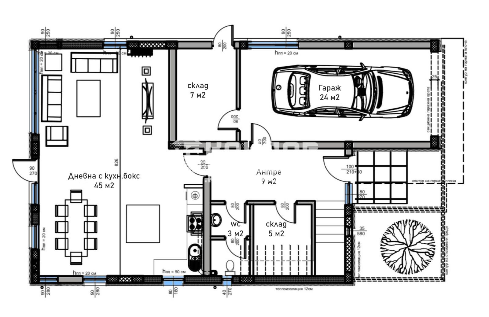 Разпределението е проектирано с мисъл за съвременно семейство ясно разграничение между представителна и нощна зона, оптимално използване на пространството и функционалност без компромис с усещането за лукс.
