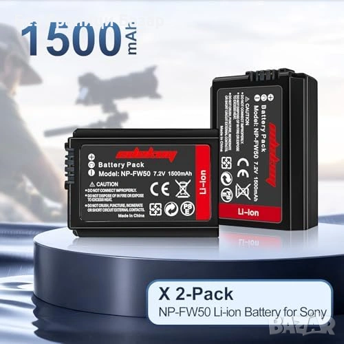 Нови NP-FW50 2 броя батерия 1500mAh за Sony A7 II A7R A7S A6300 A6500