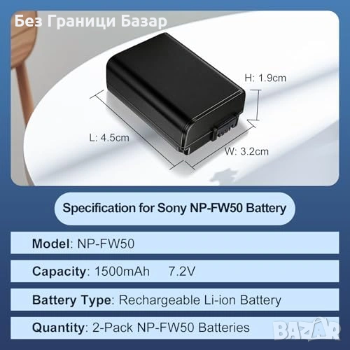 Комплект 2 броя акумулаторни батерии NP-FW50 за фотоапарати Sony