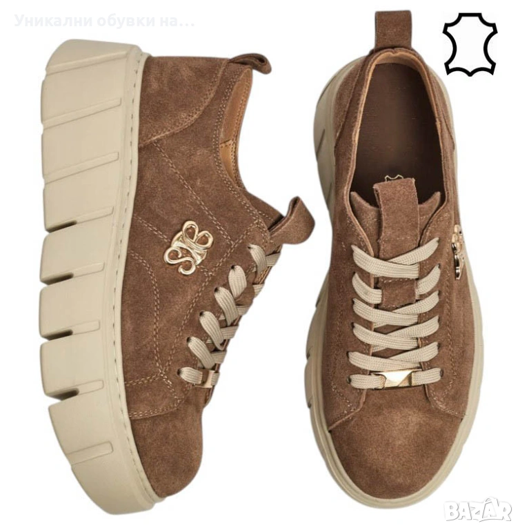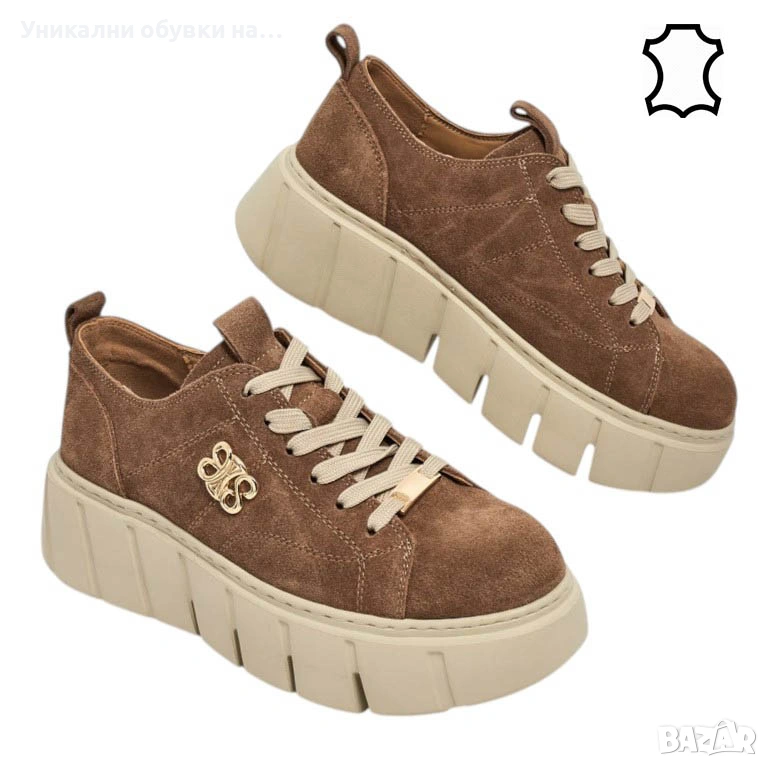 Кафяви кецове от естествен велур- Daris Brown 11733 → Обява 53534719