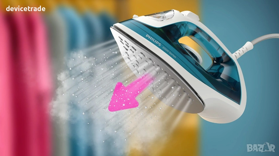Освен че отстранява гънките, нашата ютия Philips от серия 2000 убива до 99,9% от бактериите*, за да освежи дрехите и да премахне миризмите по тях.