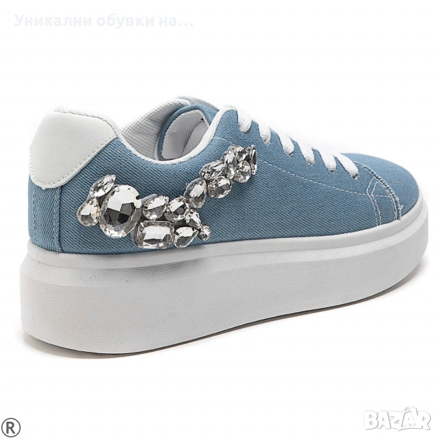 Дънкови дамски кецове с камъни- Rene Blue 11125 → Обява 53534799