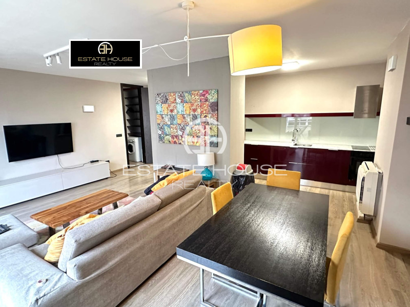 Апартаментът се отдава напълно обзаведен и оборудван с всичко необходимо за едно домакинство, включително съдомиялна машина в кухненската зона. Отоплението е решено чрез ТЕЦ и климатици, което гарантира комфорт през всички сезони и оптимални разходи. Сградата предлага контролиран достъп и видеонаблюдение.
