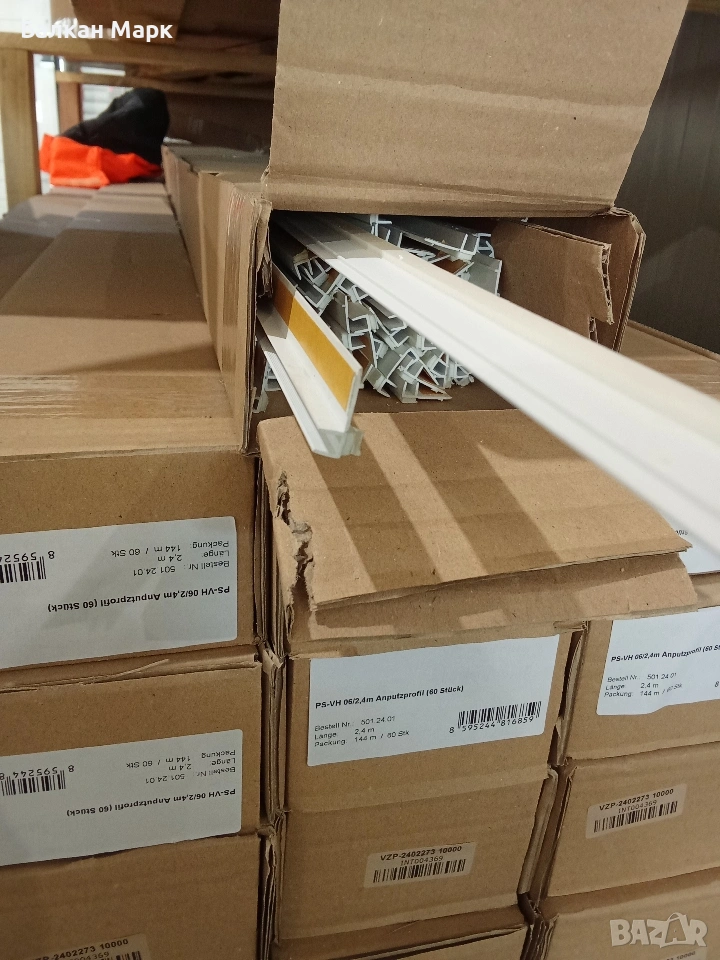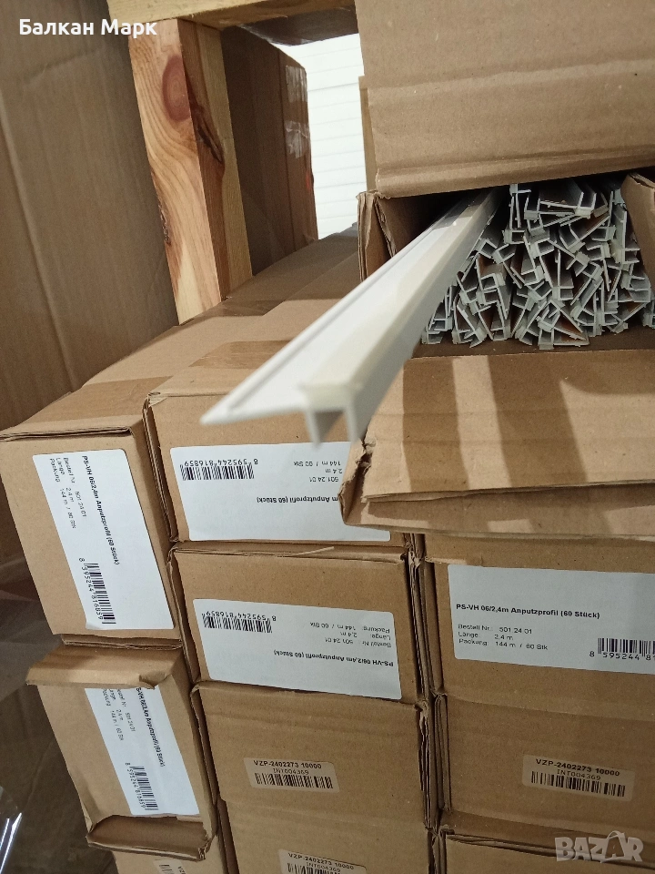 Продавам висококачествени присъединителни профили за дограма (Anputzprofil PS-VH 06), част от разнообразна палетирана стока, директен внос от Германия. Профилите са идеални за прецизно завършване на мазилката около прозорци и врати, предотвратявайки появата на пукнатини и осигурявайки водоплътност.