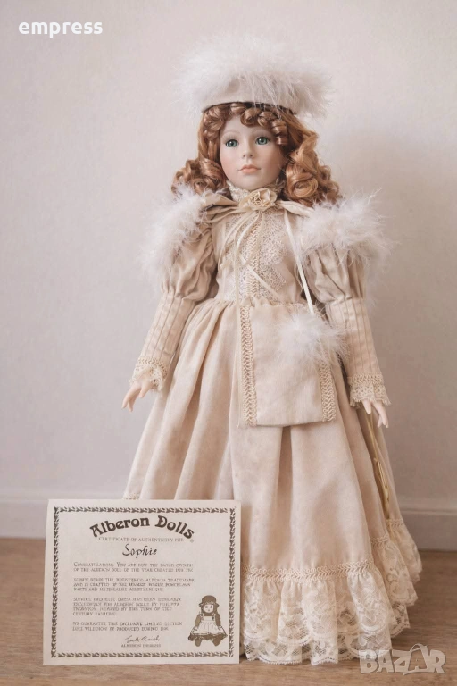 порцеланови кукли от колекционерската серия на Alberon Collection – истинско бижу за ценители и любители на класическия винтидж стил. Куклите са с височина 55 см и впечатляват с изящество, финес и внимание към всеки детайл.