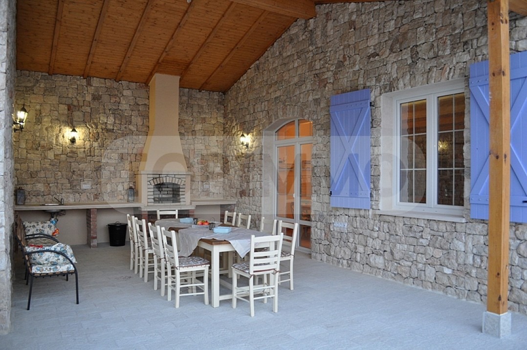 Вляво от къщата се разполага външна зона с каменно барбекю и градински мебели - разкошно място за вашата стилна вечеря на открито. Там ще намерите достатъчно прохлада от жаркото обедно слънце, както и завет при ветровито време. Край барбекю зоната ще можете да се отпуснете и насладите на тишината. Изпълнен с парфюма на лавандулови храсти в градината, летният бриз създава неповторимото чувство.