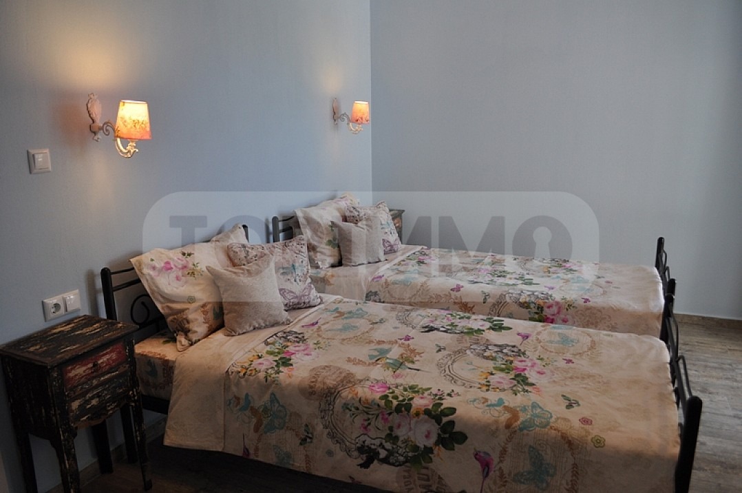 Двете стаи на първия етаж имат директен достъп до двора и басейна на вилата. Вътрешното стълбище води до втория етаж, където се разполагат останалите две спални едната с две единични легла и другата с двойно легло. Към двете спални има прилежащи бани за по-голям комфорт.