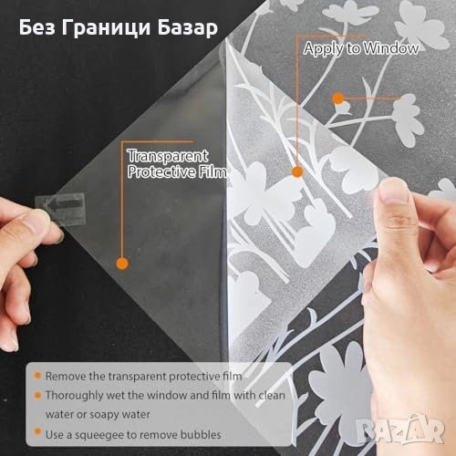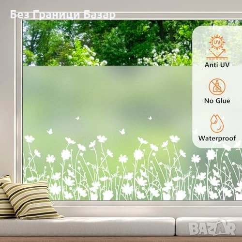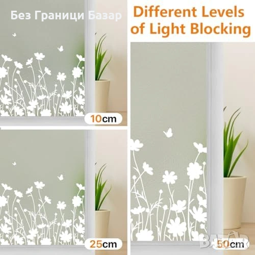 Ново Матиращо фолио за прозорци 44.5x200 см цветя анти-UV без лепило
