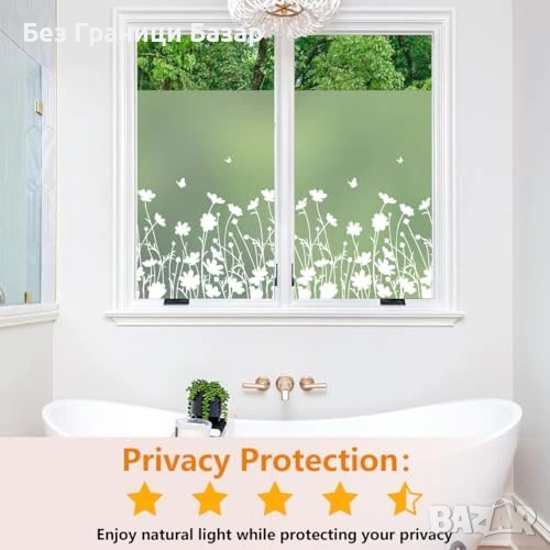 Фолио за поверителност с матов ефект и декоративни цветя – блокира нежелани погледи
