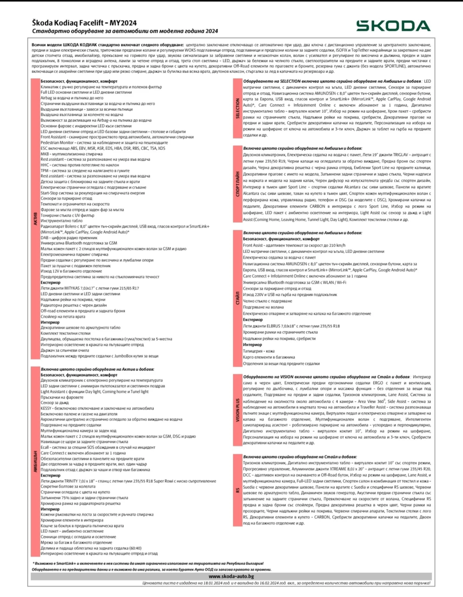 ? koda Kodiaq 2. 0 TSI 4x4 Vision Plus 2024 Цена: 40 000 Пробег: 38 000 км Гаранция: до 2029 г. Цвят: Графитено сив металик 3 фабрични ключа Оборудване: - Vision Plus пакет - 360 Area View - Lane Assist, Side Assist - LED матрични фарове - Виртуален кокпит 10" - Навигация Amundsen - Тризонов климатроник - Подгряване на предни и задни седалки - Електрически ергономични седалки с памет, масаж и вентилация - KESSY безключов достъп и старт - Адаптивен круиз контрол - Подгряване на челно стъкло - Електрически багажник + виртуален педал - Интелигентен самопаркиращ асистент - DSG автоматик - 4x4 Допълнителни екстри: - Лети джанти ASKELLA 7. 5Jx18" гланц антрацит (Super Rowi) - Акустични предни и странични стъкла - USB в огледалото за обратно виждане - Предпазители на вратите при отваряне - Карго елементи - 3 фабрични ключа (пълен комплект) Състояние: Отлично, без удари, пълна сервизна история, реални 38 000 км. Закупен нов от Еуратек. Забележка: В каталога за Vision Plus е включен подгрев на волана, но конкретният автомобил е доставен без тази функция.