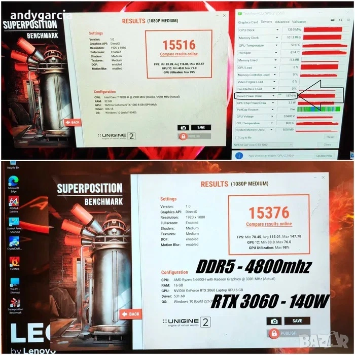 МОЖЕ БИ НАЙ-ВАЖНОТО, КОЕТО ЗАСЛУЖАВА ДА СЕ ОТБЕЛЕЖИ, ЧЕ КАРТАТА БИЕ RTX 3060 6GB в най-силната си версия от мощност 140 вата, поставяна в Lenovo Legion 5 Pro Gen 7 и е РАВНА на повечето RTX 3070 /85-115W/ поставяни в при ASUS TUF, Acer Nitro 5, Acer Predator Heios, MSI Katana и други.