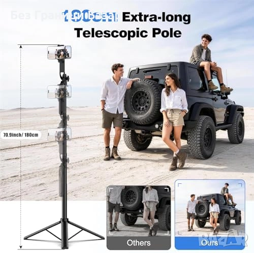 Плавно телескопично удължаване от 30 см до 180 см, удобен за снимки от височина и групови кадри
