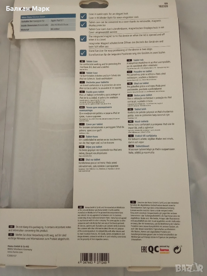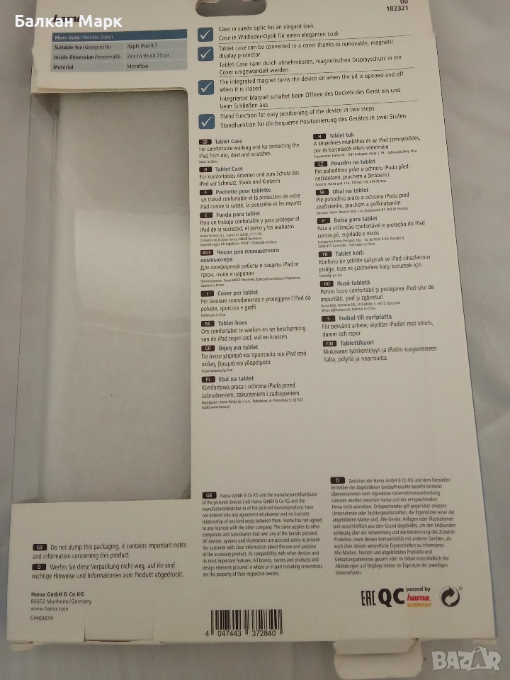 Продавам чисто нови, висококачествени калъфи за таблет Apple iPad 9.7" (модели 2017 и 2018 г.). Продуктът е част от серията Prime Line на немската марка Hama – внос от Германия (палетирана стока с гарантирано качество).