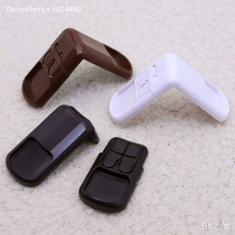 Заключалка, която се поставя под ъгъл, налична в бял, кафяв и черен цвят. Размери: широчина - 4 см, дължина на всяка от двете страни в заключено състояние - 7см.