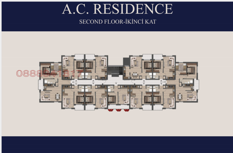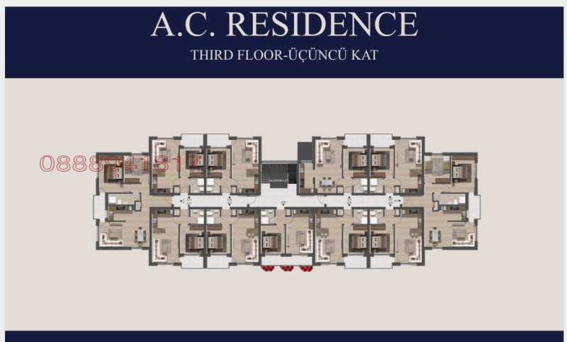 A.C.RESIDENCE е бутикова жилищна сграда с 31 апартамента. Състои се от 25 двустайни и 6 тристайни жилища. Апартаментите са с площ от 49 кв.м. до 90 кв.м. Осигурено паркиране за 1 бр. автомобил за всяко жилище. Функционално разпределение с просторни помещения. Нисък процент общи части.