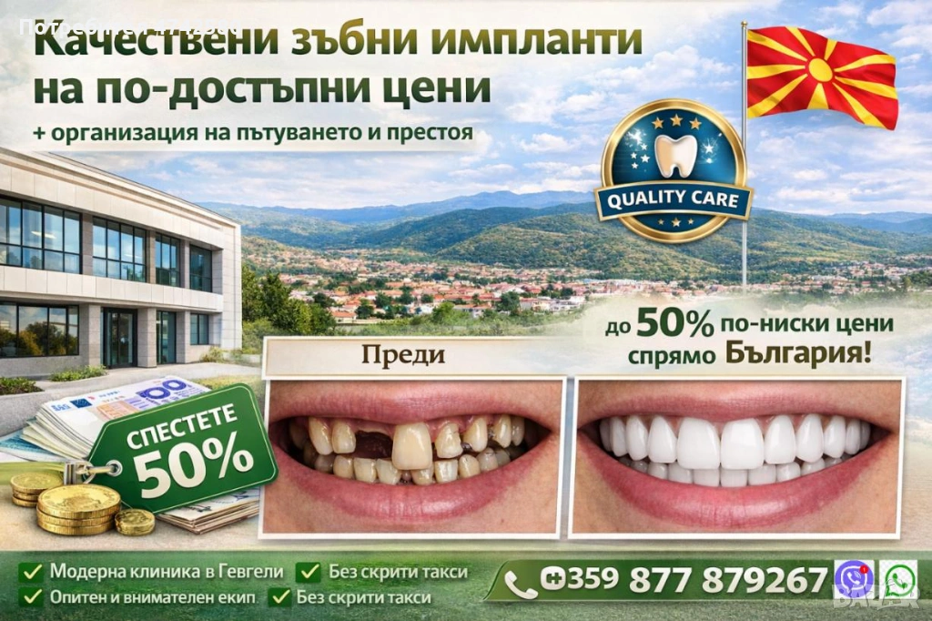 Съдействаме на български пациенти, които искат да получат качествено стоматологично лечение на двойно по-ниски цени в Гевгели, Северна Македония.