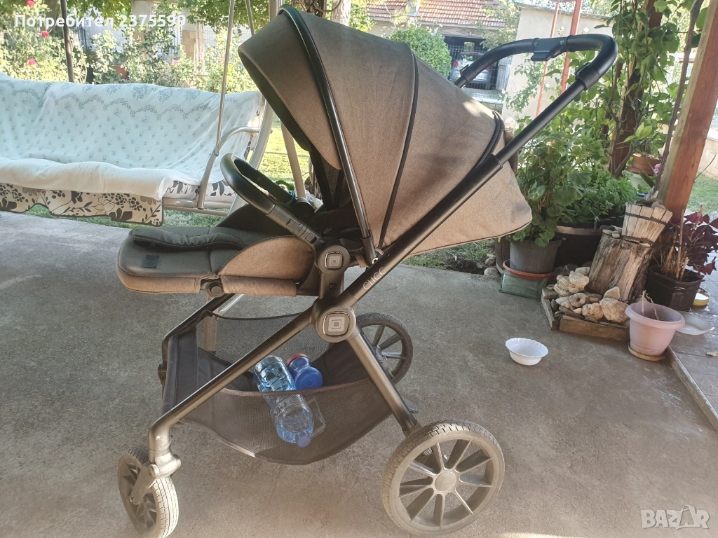 Добро общо състояние. Има дефект на рамката и не може да се разпъва и свива височината ѝ. Включва бебешки и летен кош с всички допълнителни оригинални части, както и дъждобран. Чантата не е ползвана никога. Количката е ползвана година и 5 месеца. С оригинална опаковка.