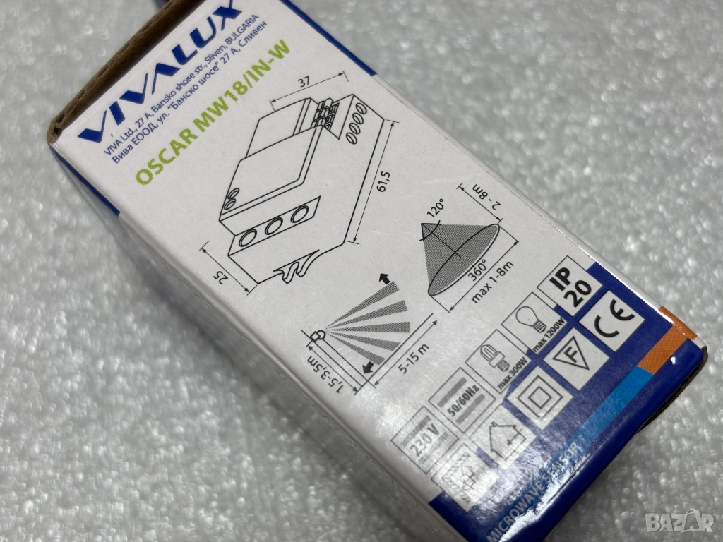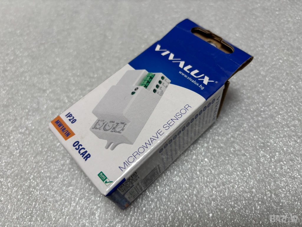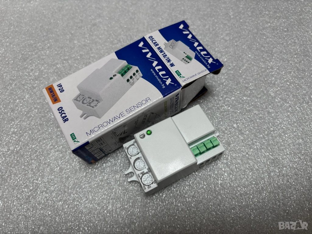 Oscar от VIVALUX е компактен микровълнов сензор за движение, предназначен за вграждане в осветително тяло или за монтаж във влагозащитена кутия. Идеален за автоматизация на осветлението в закрити пространства като коридори, складове, гаражи или общи части.