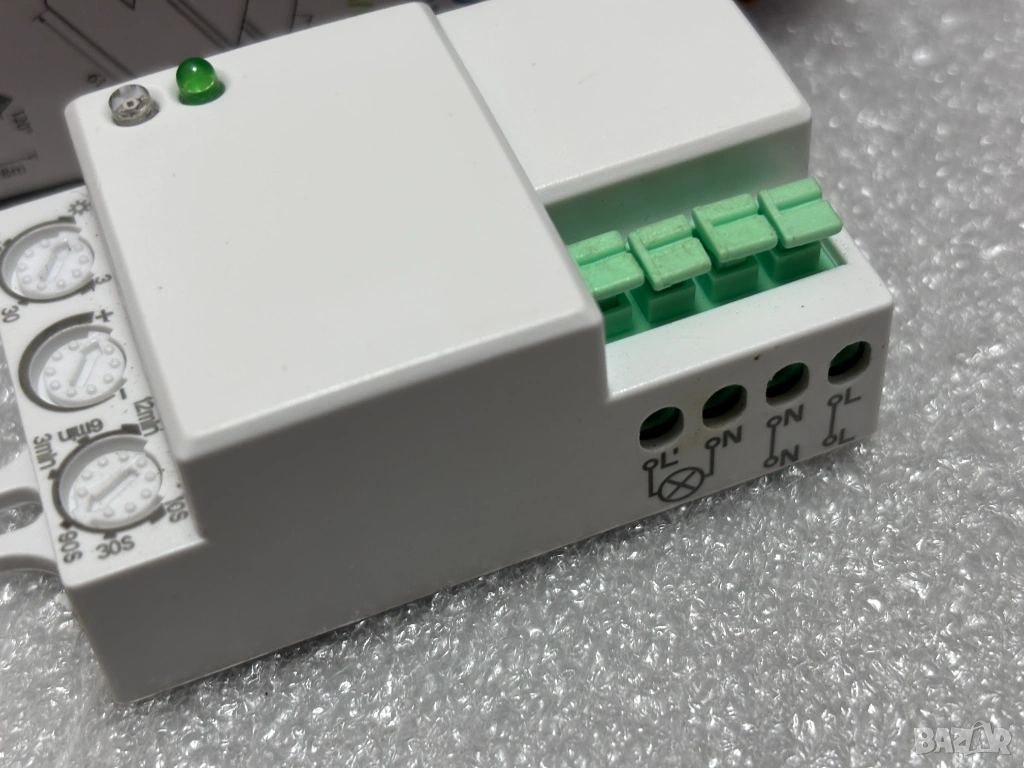 Сензорът открива движение с висока точност, дори през тънки прегради, благодарение на микровълновата технология. Това го прави отличен избор за места, където се изисква автоматично и дискретно управление на светлината.