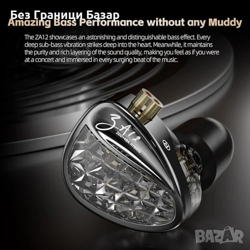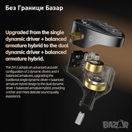 Нови KZ ZA12 хибридни слушалки 6 драйвера 2pin сменяем кабел 3.5мм