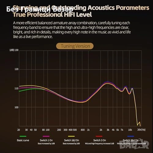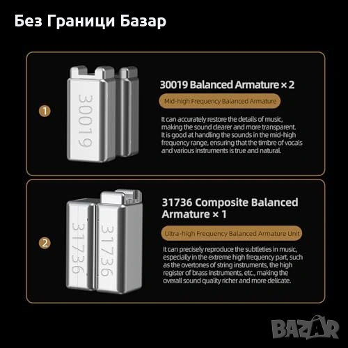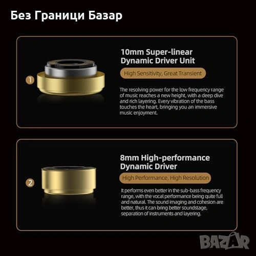 Хибридна конфигурация 2 динамични + 4 балансирани арматурни драйвера за детайлен и плътен звук