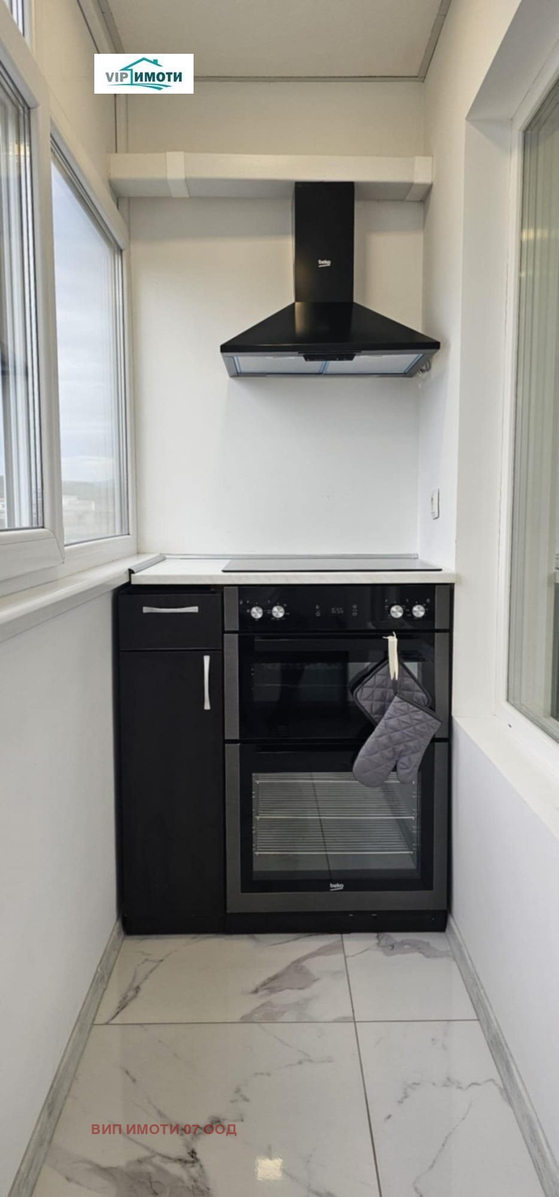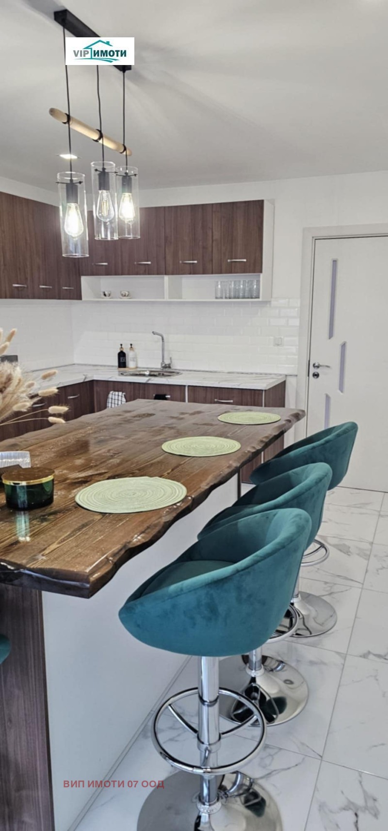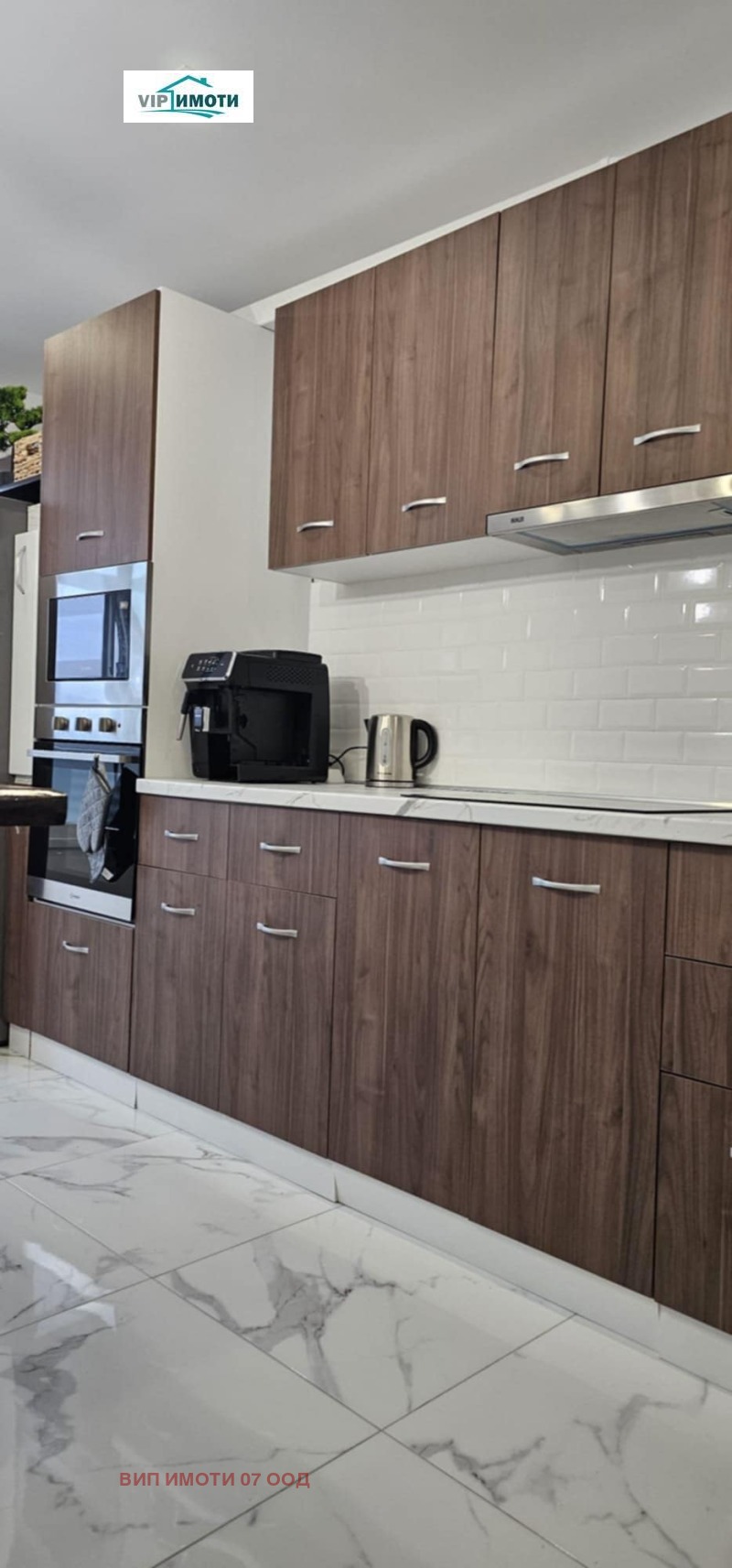 Още с отварянето на блиндираната входна врата усещаш, че това не е случаен имот. Стъпваш върху гранитогрес с мраморен ефект, който минава абсолютно навсякъде в апартамента хол, кухня, коридор, спални. Единна настилка, без компромиси, без преходи, без кръпки . Коридор - Коридорът е просторен, светъл и подреден. Поръчкови интериорни врати с матови стъклени елементи еднакви за целия апартамент Ключове и контакти Panasonic Вграден шкаф за обувки Отдясно отделно перално/складово помещение: Пералня със сушилня LG (2 в 1) Бойлер Tesy Всичко е скрито, чисто и функционално. Хол и трапезария сърцето на апартамента! Влизаш в пространството и гледката буквално те спира. Голям прозорец с немска четирисезонна дограма, от който се вижда целият град. Това не е светло помещение това е панорама. Електрическа камина, вградена в дизайнерска зелена акцентна стена. Вградени декоративни ниши и рафтове Окачен таван с дизайнерско осветление Висящи лампи над трапезната част Масивна трапезна маса Удобен диван, позициониран така, че да гледа и камината, и града Това е място за вечери, разговори, гости. Климатик във всяка стая . Кухня като в ресторант, но твоя! Кухнята е огромна, широка, въздушна. Всичко е вградено, всичко е мислено за удобство. Кухненски мебели са с изключително много място за съхранение. Плот с мраморен ефект! Гръб от бели метро плочки. Американски тип хладилник, вградени уреди фурна, котлони, аспиратор и микровълнова, вградена мивка с модерен смесител. В центъра: Голям кухненски остров Бар столове Дизайнерско осветление Телевизор Samsung на стената Тук не просто готвиш. Тук се чувстваш като шеф-готвач в собствен ресторант. Тераса към кухнята втора кухня! Терасата е напълно усвоена и функционира като втора кухня: Допълнителни шкафове Фурна и котлони Beko Немска четирисезонна дограма Панорамна гледка Идеално за готвене без миризми, за барбекю идеи, за кафе с изглед. Спалня 1 Тихо, уютно пространство: Поръчково двойно легло Голям гардероб с огледални врати, акцентна стена, климатик , същата мраморна настилка. Спалня 2 двойно легло, гардероб и скрин, климатик, остъклен балкон допълнително светло пространство, подходящо за кафе или работен кът, немска четирисезонна дограма. Баня- Модерна, дизайнерска, без нищо за правене: черно-бели дизайнерски плочки, просторна душ кабина, хидромасажен панел , шкаф с мивка LED огледало. Отделна тоалетна - Вградена структура, дизайнерски плочки , LED ниши и рафтове. Най-важното Основен ремонт преди около 1 година Климатик във всяка стая Немска четирисезонна дограма навсякъде Всички мебели и електроуреди остават Апартаментът е готов за живеене или висок клас отдаване под наем Реално вложени много пари не на думи, а във всеки детайл Това не е апартамент , който се разглежда . Това е апартамент, който се купува, защото вече си вътре. Оферта 1576. Агенцията работи с всички водещи банки в страната и съдейства напълно безплатно при необходимост от банково кредитиране, като осигурява професионална консултация и съдействие до финализиране на сделката. За повече информация и огледи: