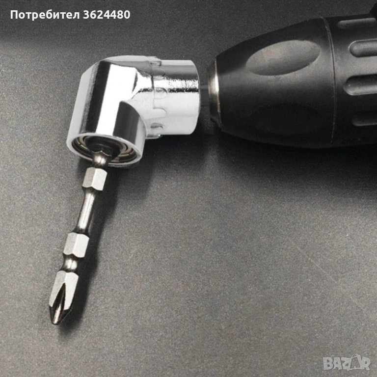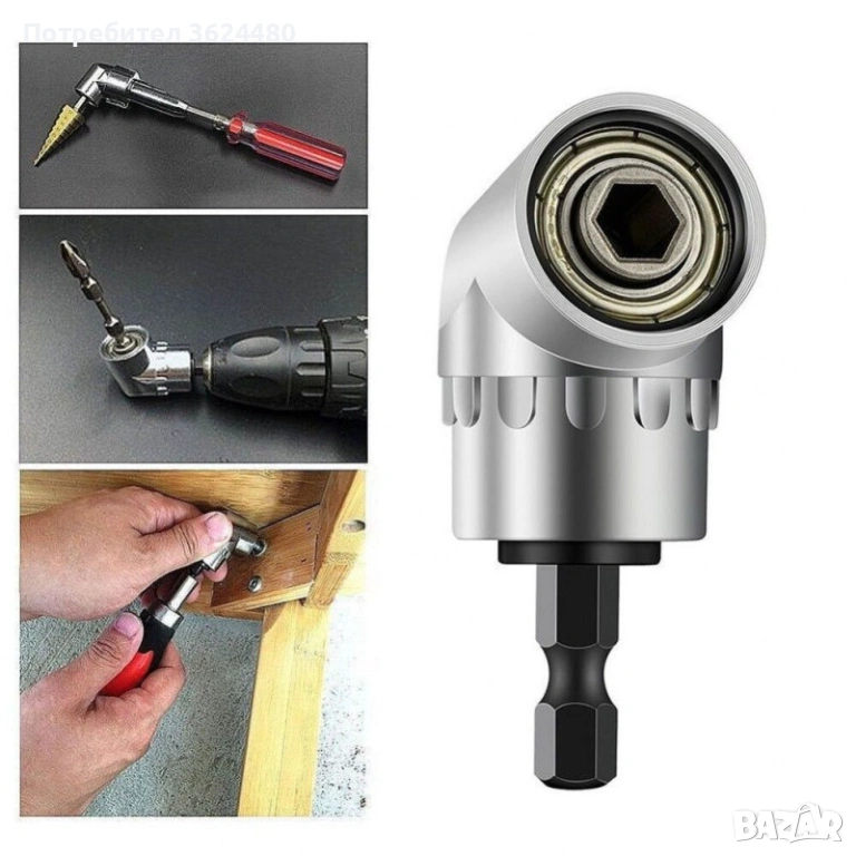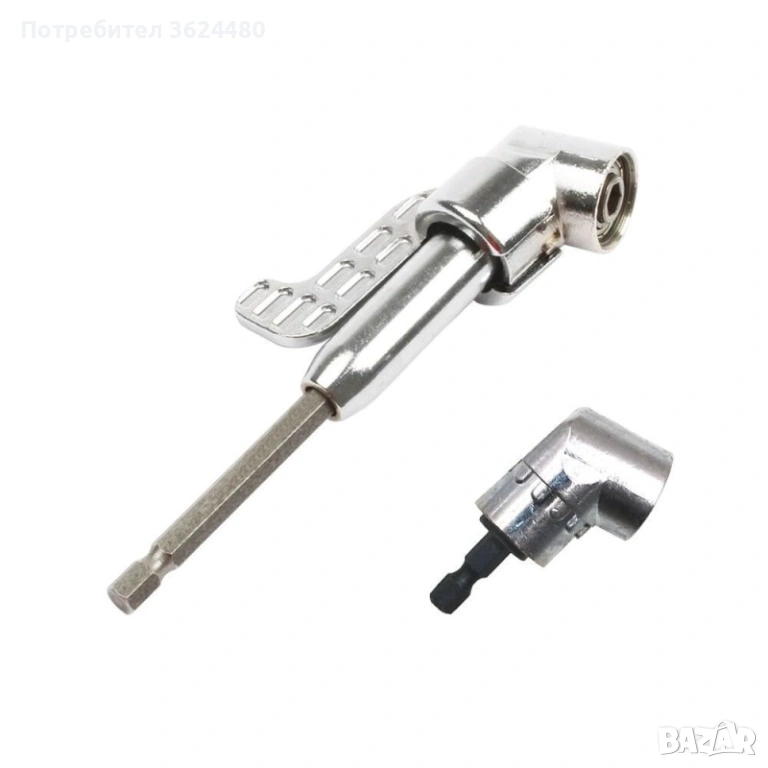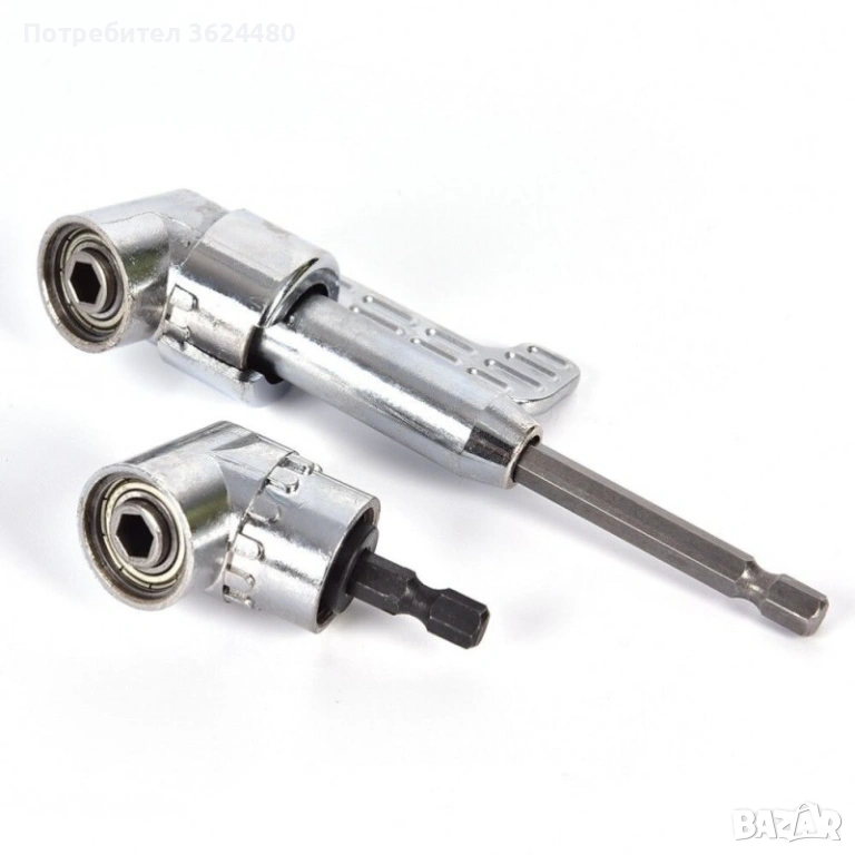 Един не много ползван но необходим инструмент, когато трябва да завием или развием някакъв крепежен елемент, или да пробием отвор във тясно и трудно достъпно за работа място. Подходящ за използване със акумулаторен винтоверт, акумулаторна отвертка както и бормашина.
