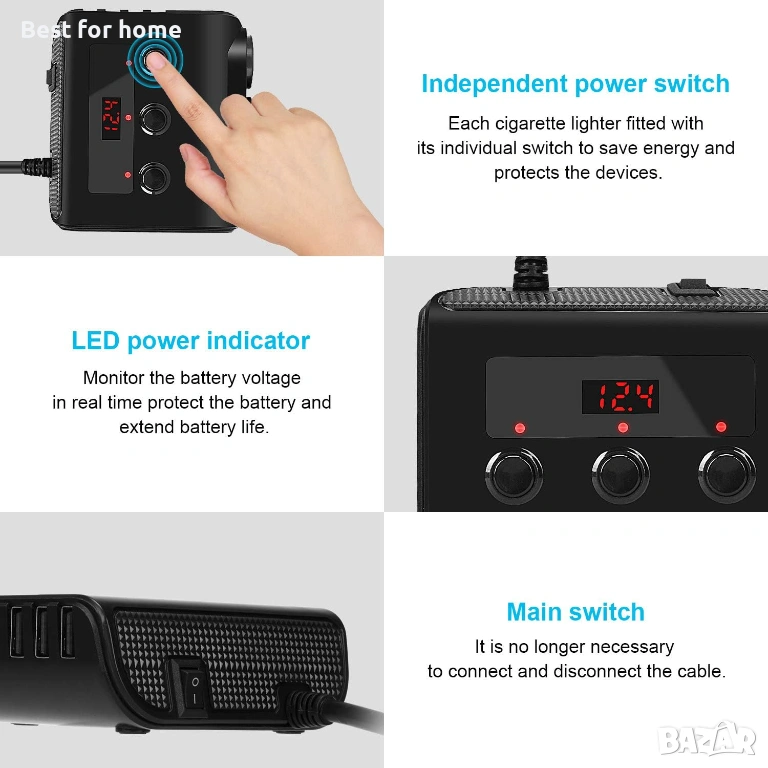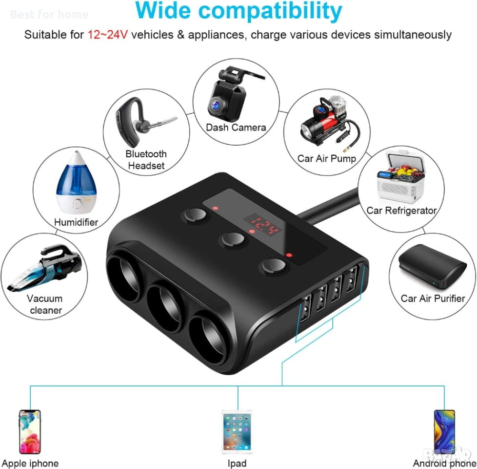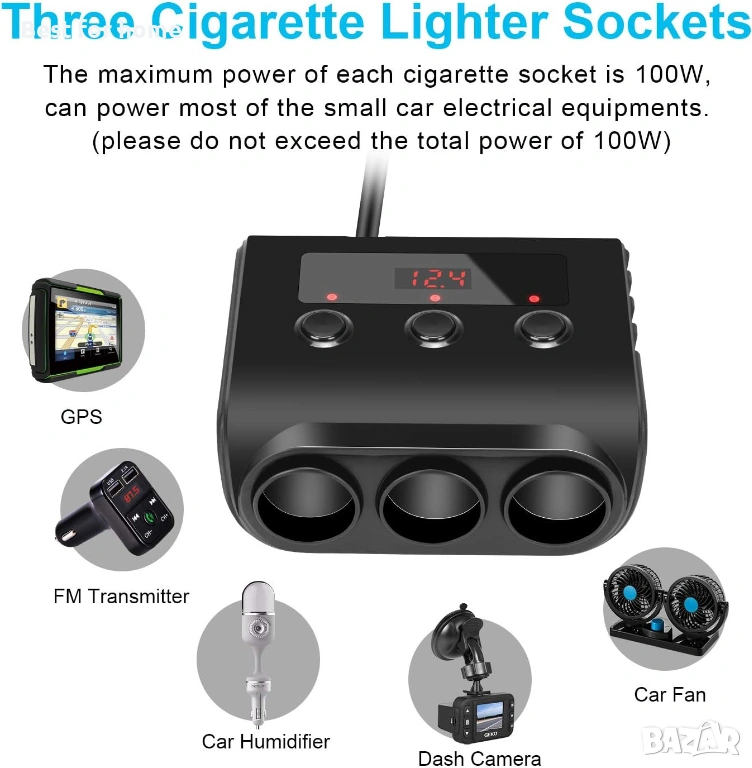 【3 цени на всички цигари】 Chaque allume-cigare peut fournir une puissance maximale de 100W (la puissance totale de toutes les connexions ne doit pas dépasser 120W), toutes les prises sont fabriquées selon les normes internationales, ausreichend pour l'utilisation simultanée d'un множество d'appareils tels que Dash Cam, GPS, chauffage de siège, ventilateur de voiture et autres équipements de véhicule 12V / 24V.