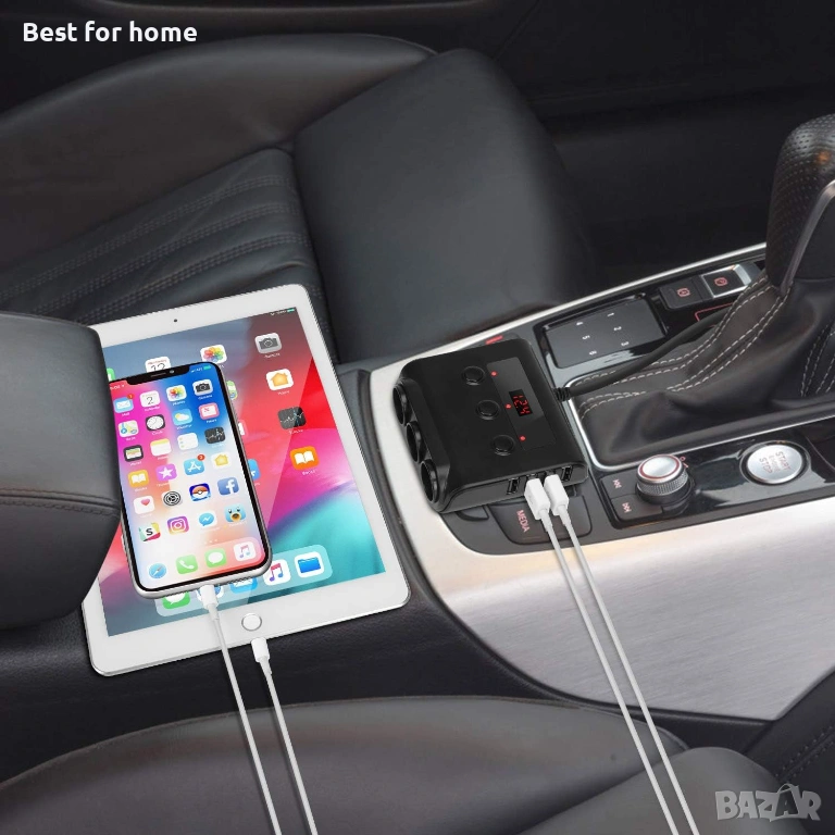 Kingwei адаптер за зареждане за запалка, 4 USB порта, превключвател за iPhone, iPad и др