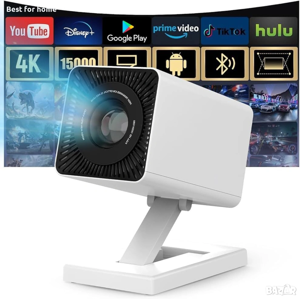 Мини проектор поддържа 4K 1080P, мини проектор с WiFi 6 и Bluetooth 5.4, преносим проектор с автоматично трапецовидното изкривяване, 200-инчов екран, интелигентен проектор, съвместим с лаптопи, смартфони и телевизори