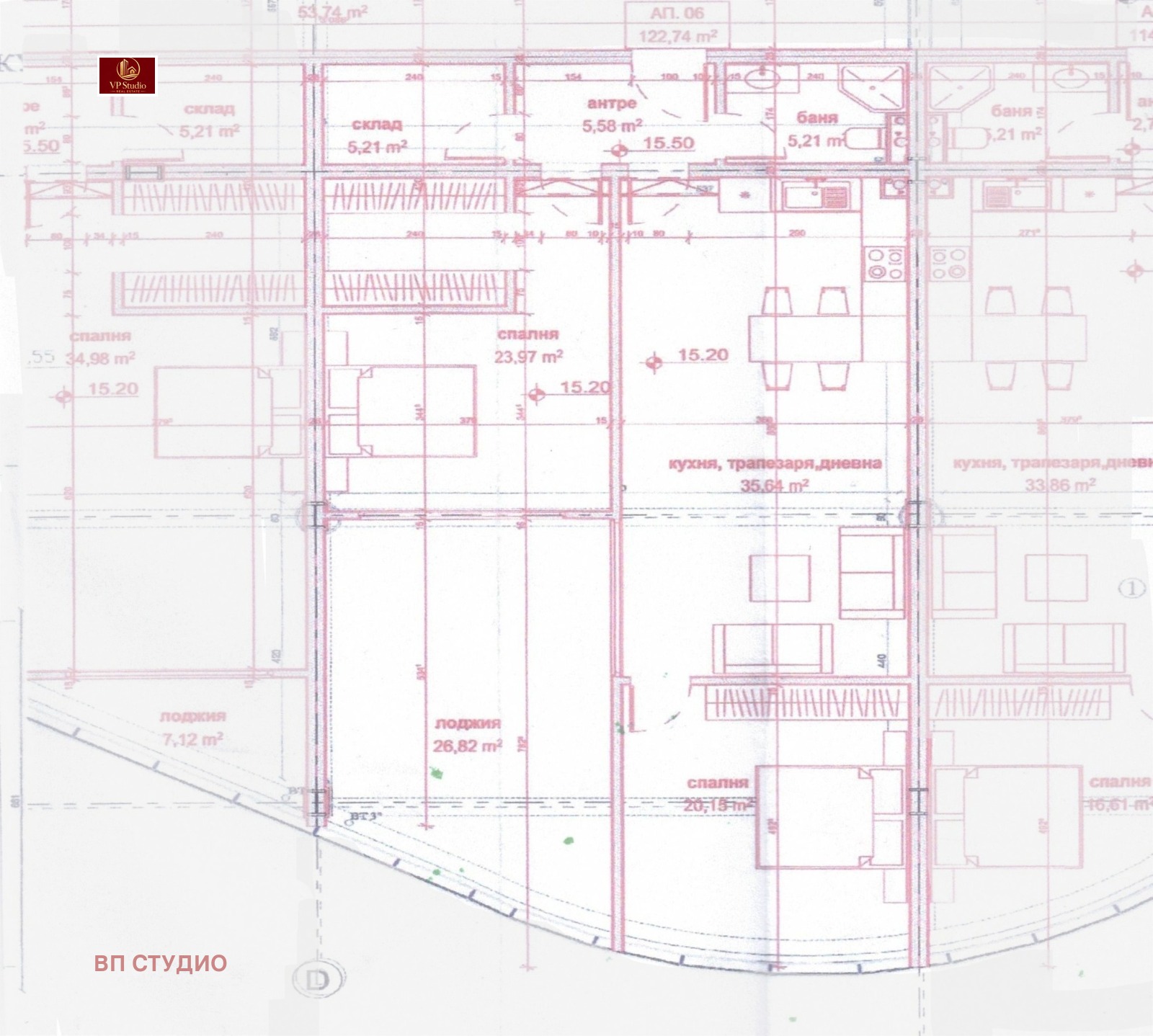 VP STUDIO представя на Вашето внимание, тристаен апартамент в кв. Драгалевци. Сградата се намира на 5мин. пешеходно разстояние от бъдеща метростанция, магазин Фантастико, Лидъл, и на 5мин. с кола от МОЛ Парадайс и Южен парк. Апартамента се намира в сграда със смесено предназначение (магазини, офиси и апартаменти). Имота е разположен на етаж 4 от 4. Панорамна гледка, 3 м. височина на таваните, просторни помещения и функционално разпределение. Застроена площ 123 кв.м.