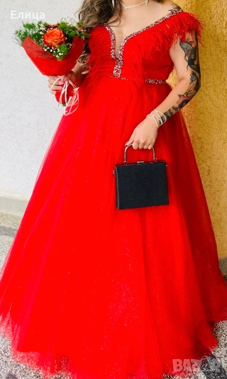 Рокля в цвят червено , снимка 1 - Рокли - 53537095 Рокля в цвят червено , снимка 2 - Рокли - 53537095 1/2