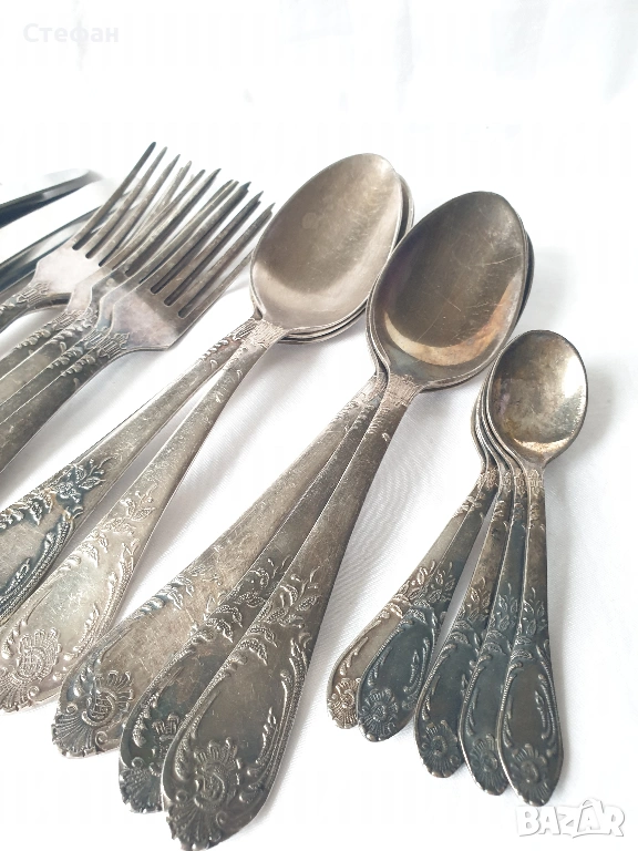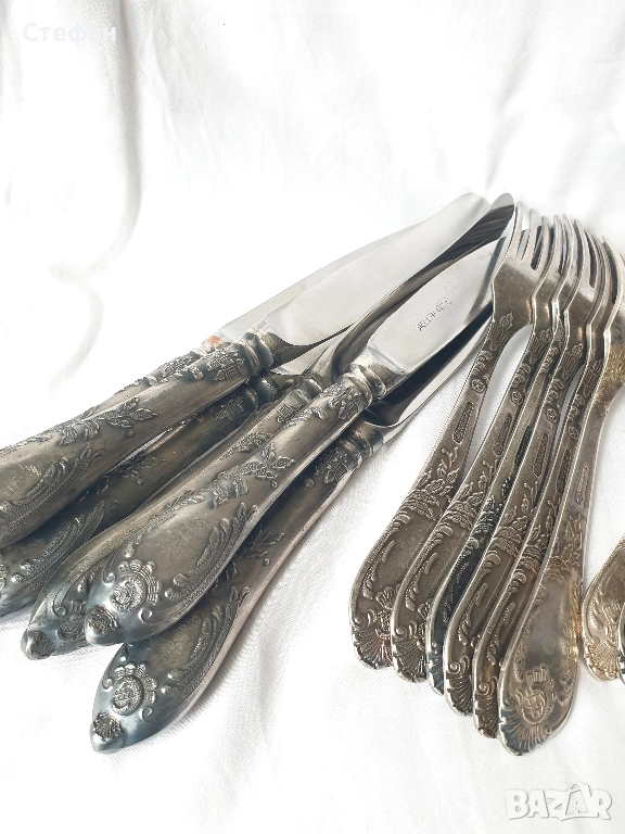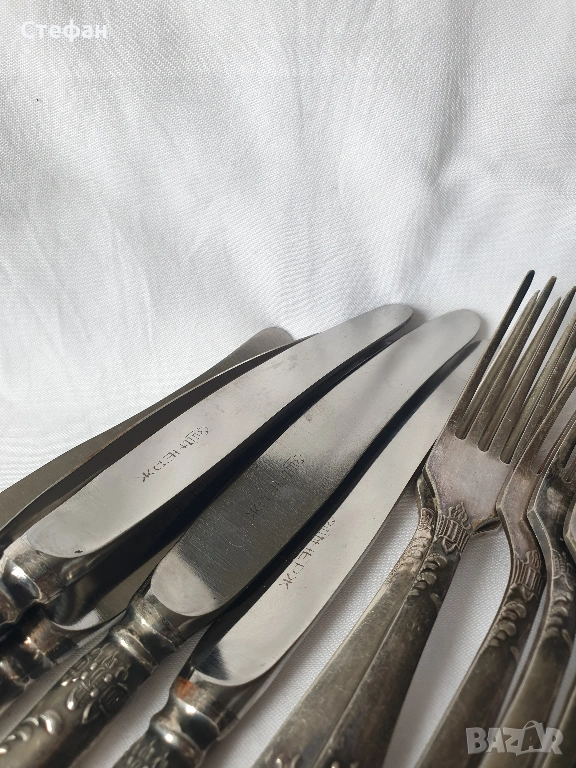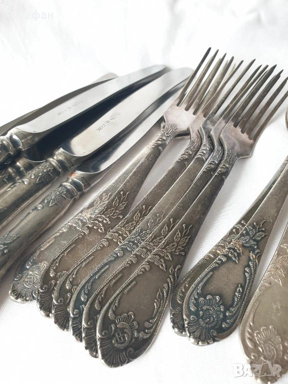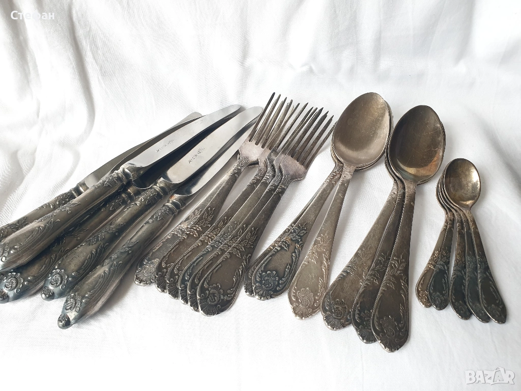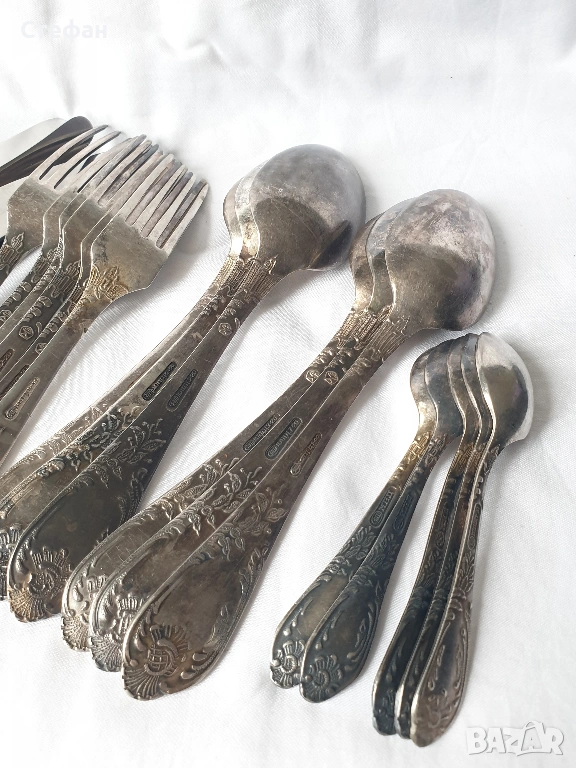 Комплект посребрени прибори от 23 броя в перфектно състояние, произход - СССР, маркирани.